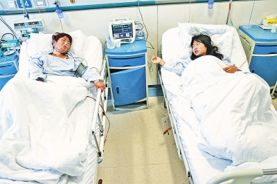 昨天下午4點(diǎn)多,當(dāng)記者在鄭大一附院肝移植病區(qū)見到張文亞和李愛云時(shí),兩人正躺在床上輸液。